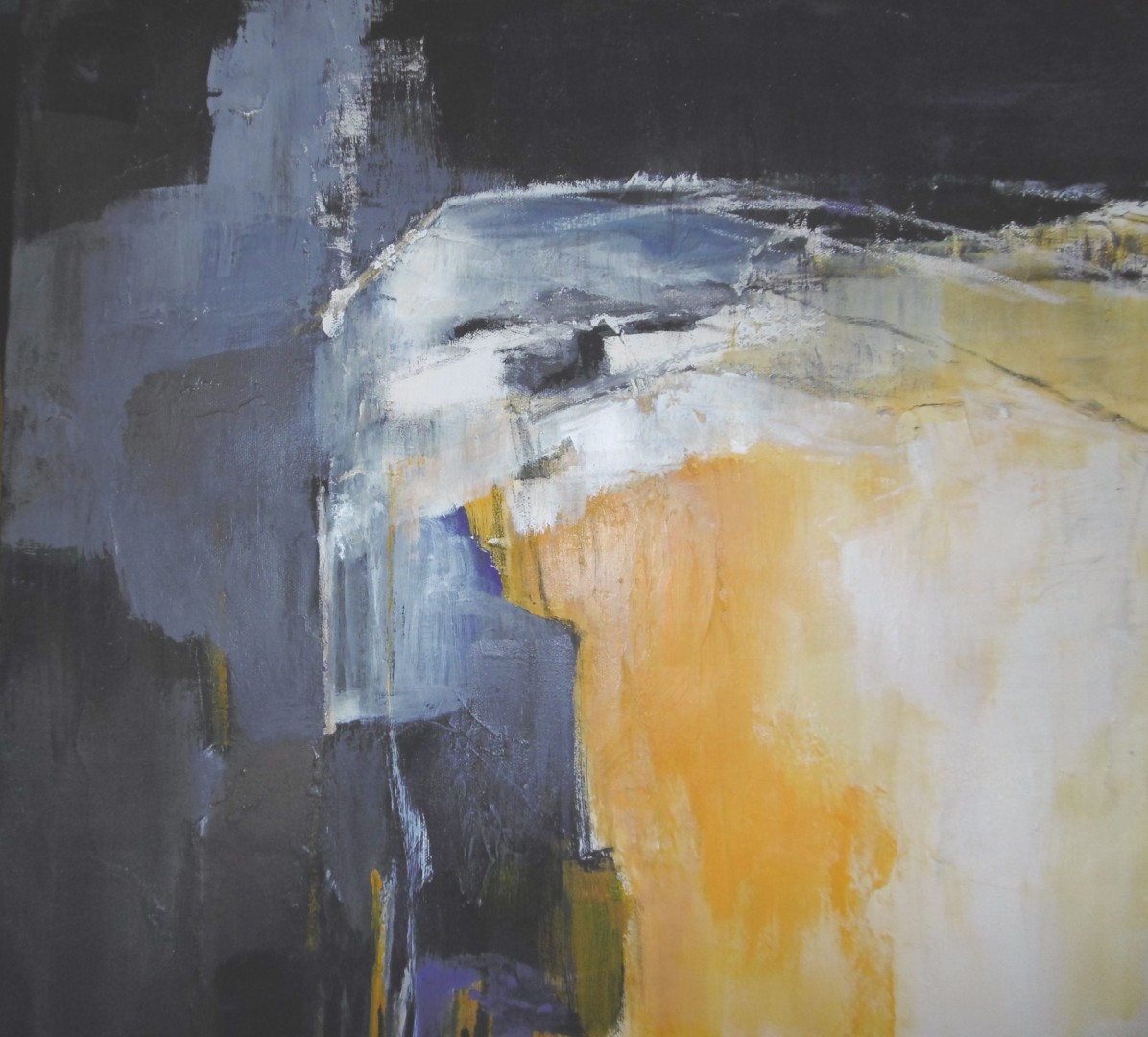 ABSTRAIT jaune et bleu à la forme rectangulaire . Une lumière blanche nous entraîne vers l'intérieur
