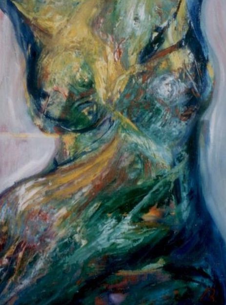 DANSEUSE ORIENTALE ou Femme 2 en vert : huile sur châssis entoilé